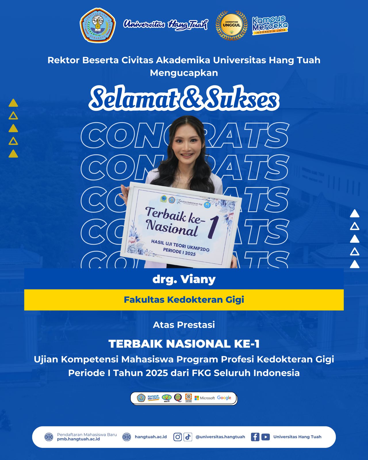 TERBAIK NASIONAL KE-1 Ujian Kompetensi Mahasiswa Program Profesi Kedokteran Gigi Periode I Tahun 2025 dari FKG Seluruh Indonesia dengan nilai 96.7