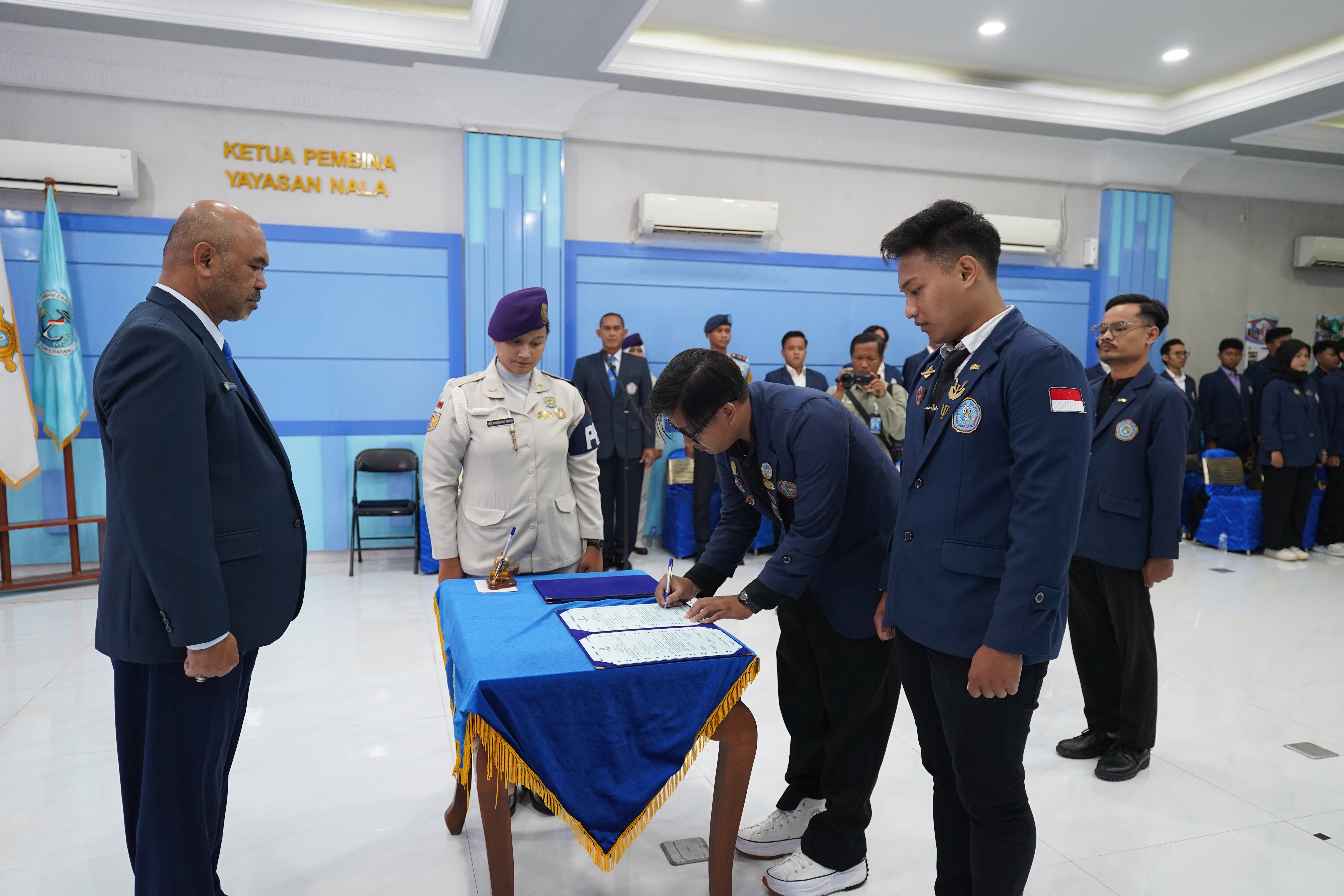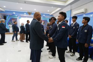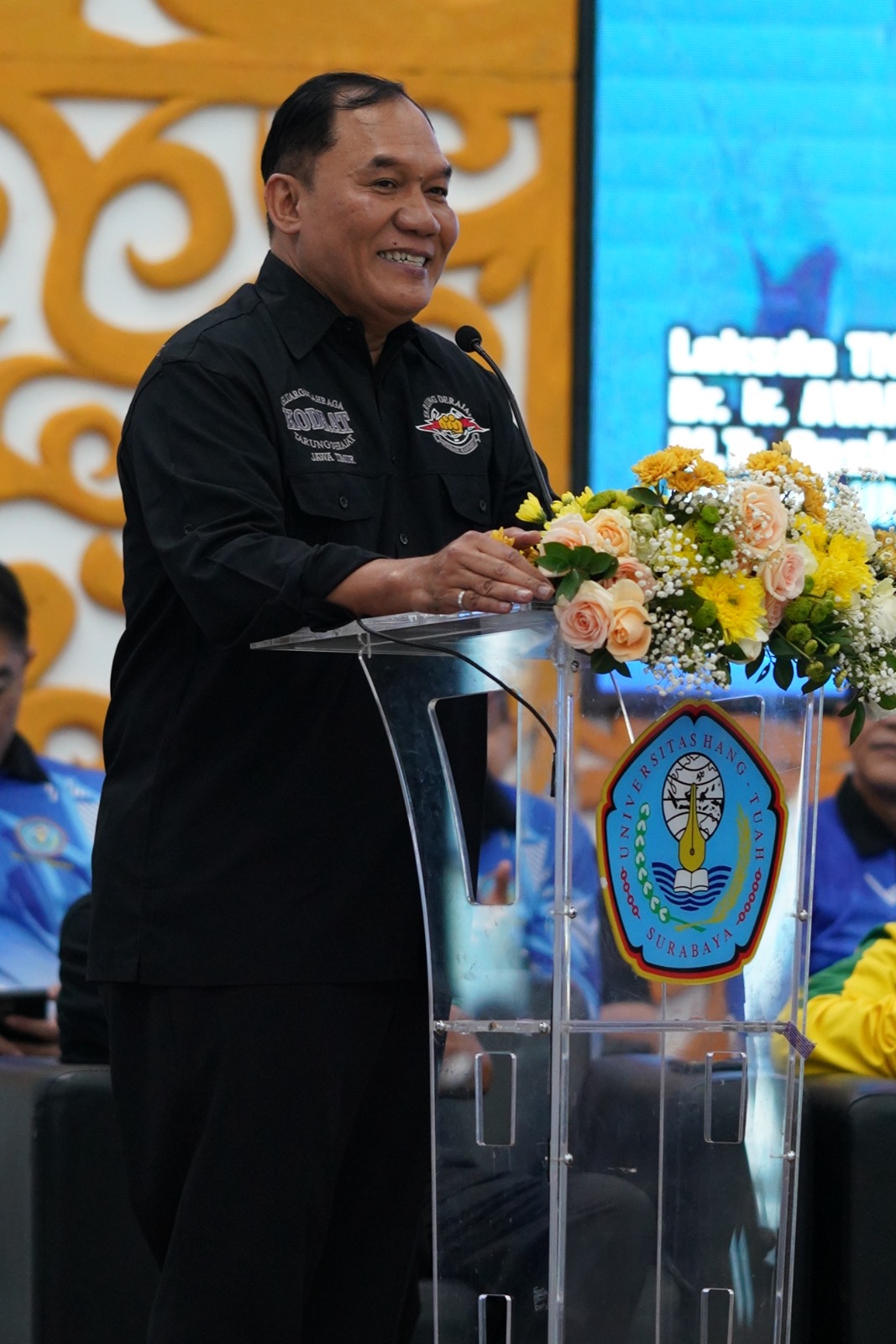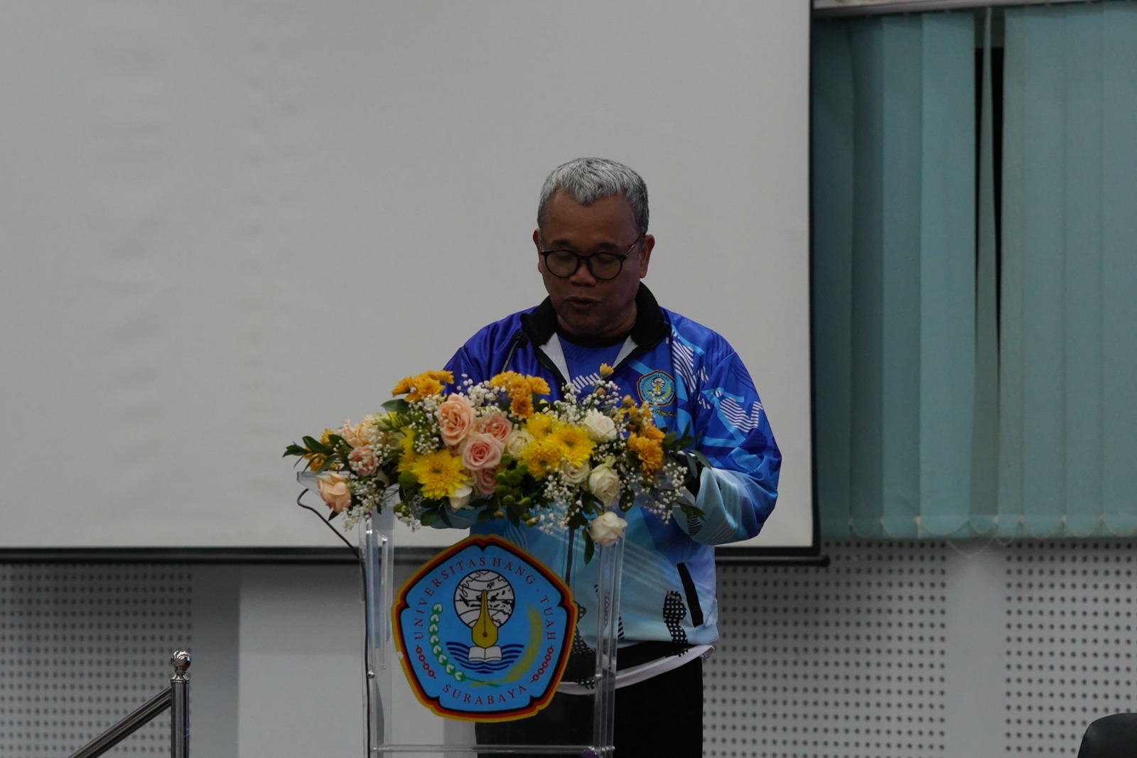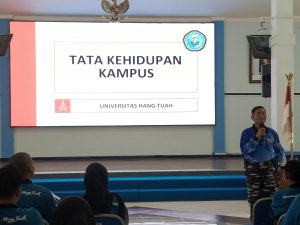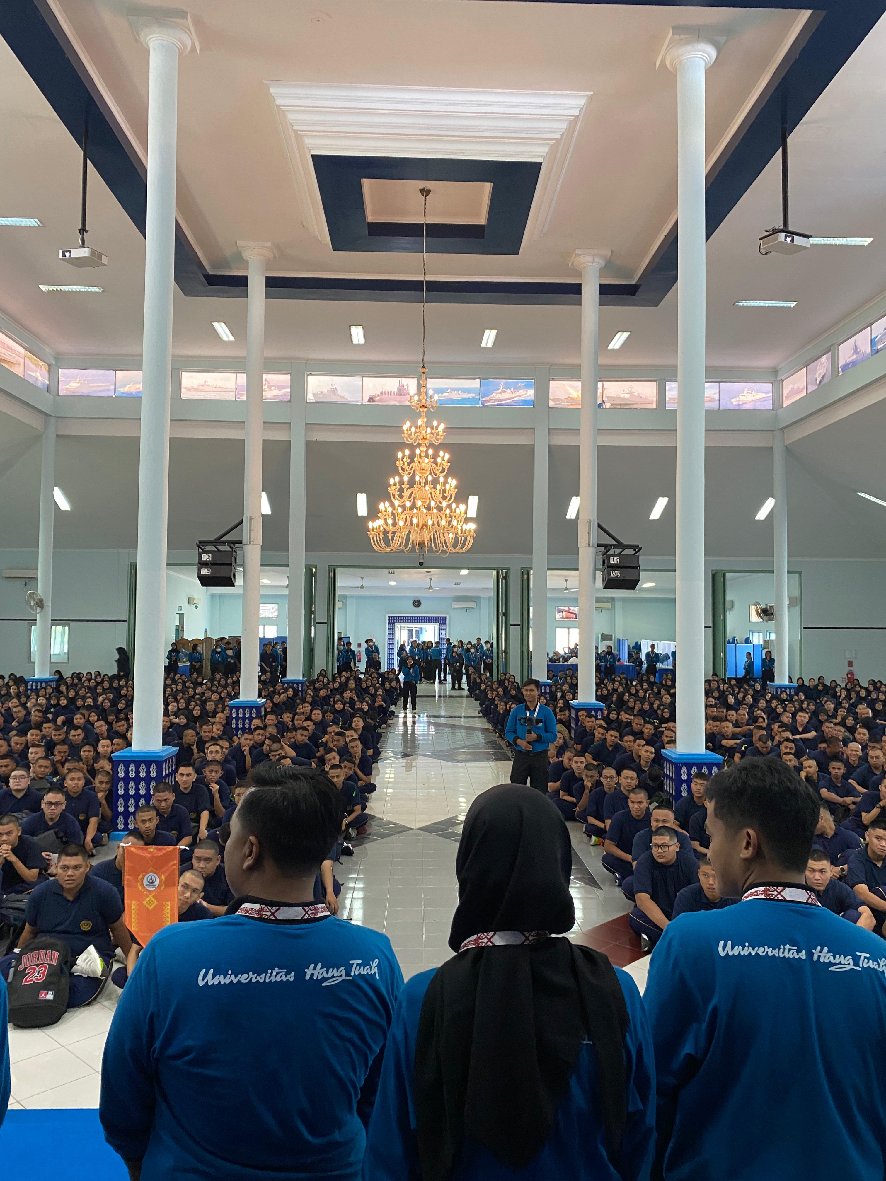 Dalam sesi pembekalan materi, Wakil Rektor II Dr. Iwan Isnurwanto, S.H., M.A.P., M.Tr.(Han). memberikan pemahaman mendalam tentang Kepemimpinan yang relevan dengan tantangan dunia kampus maupun dunia profesional. Materi ini mengajak para mahasiswa untuk memahami esensi kepemimpinan visioner yang berbasis integritas, tanggung jawab, dan kemaritiman sebagai ciri khas Universitas Hang Tuah.