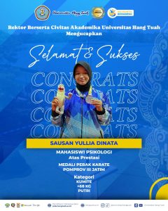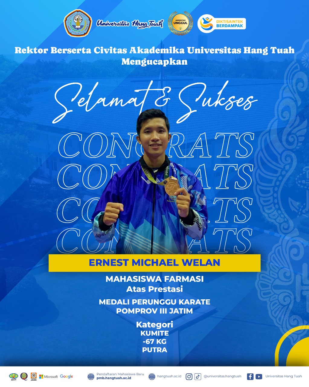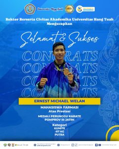 Pada hari Selasa tanggal 03 Mei 2025 Atlit Universitas Hang Tuah Karate Mendapatkan Medali Perak dan Medali Perunggu  Pomprov III Jatim, juara 2  medali perak a.n. Sausan Yullia Dinata 20240810036 (Kumite +68 kg putri) Fakultas Psikologi, Juara 3 perunggu a.n. Ernest Michael Welan 20210430074 (Kumite -67 kg putra) Fakultas Farmasi