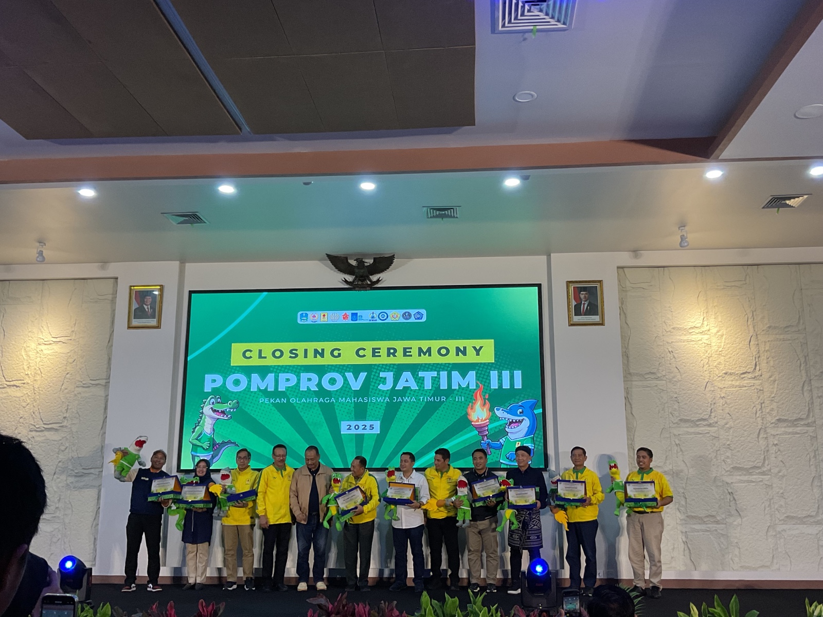 Pada hari Rabu tanggal 04 Mei 2025 Universitas Hang Tuah menghadiri  penutupan Pomprov Jatim III 2025 yang diwakili oleh Bapak Budi Priyono, S.Sos., M.M dari Biro Kemahasiswaan, Kemaritiman dan Alumni (BKKA) UHT,  Pomprov III Jawa Timur 2025 telah usai dan resmi ditutup di Universitas Surabaya. Ajang olahraga dua tahunan ini berlangsung di Kota Surabaya, tanggal 28 Mei-04 Juni 2025.