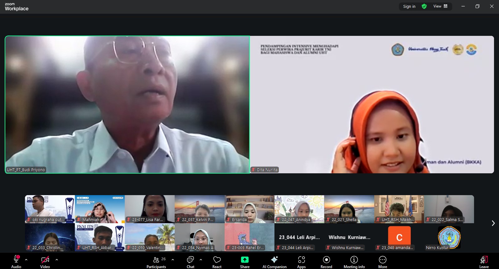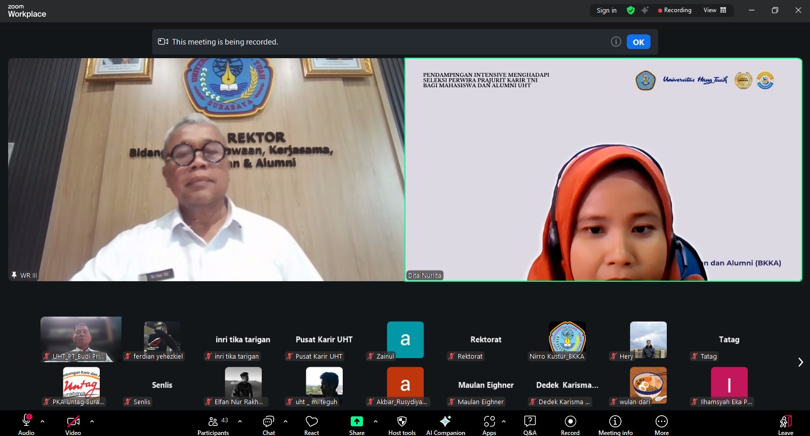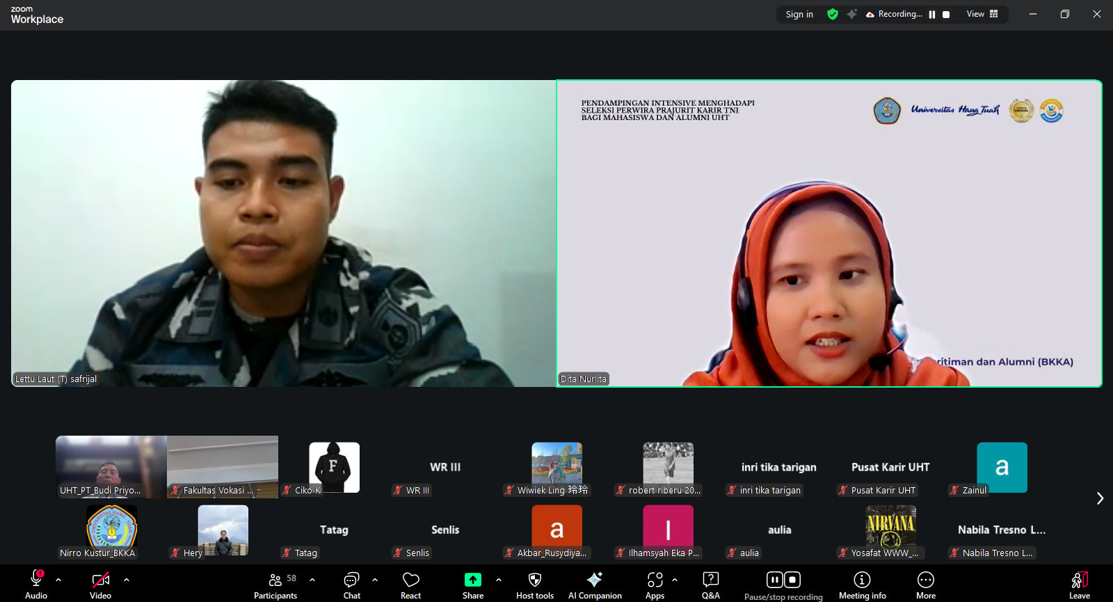 Webinar Pendampingan Intensive menghadapi Seleksi Perwira Prajurit Karir TNI bagi Mahasiswa dan Alumni UHT Tahun 2025