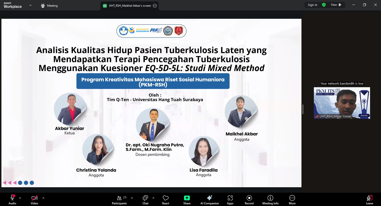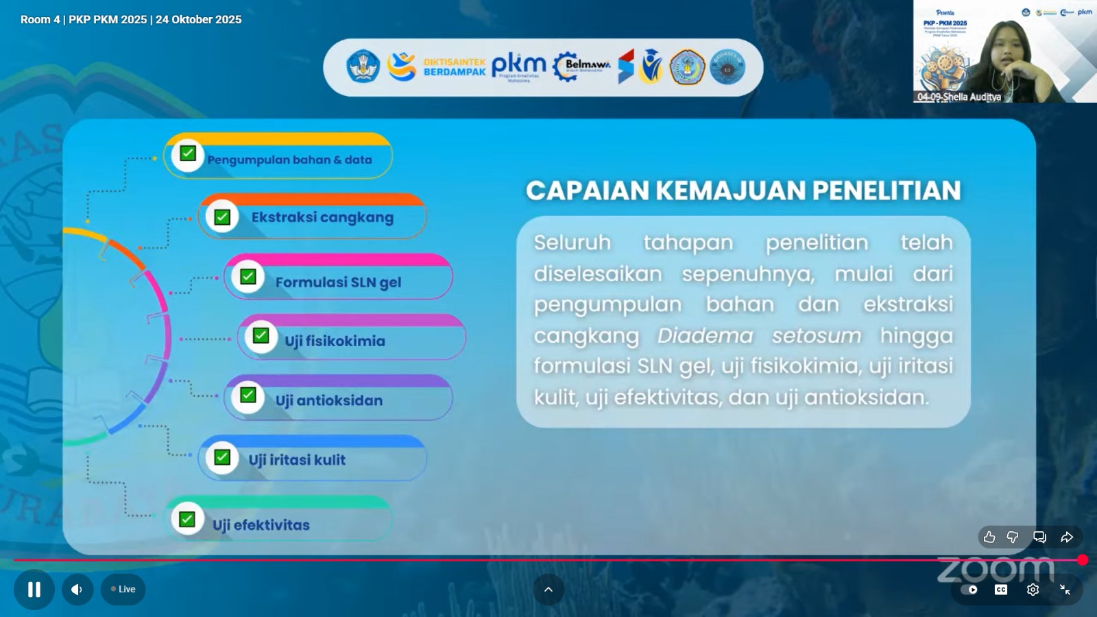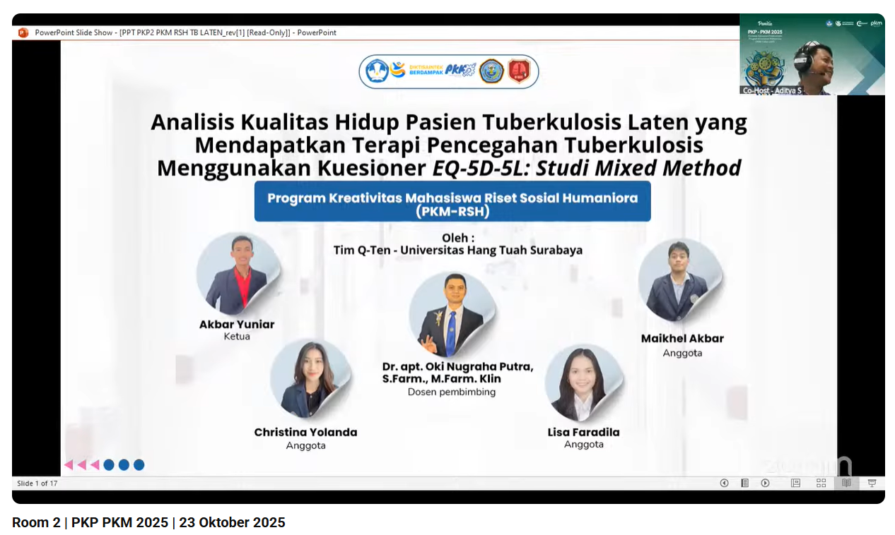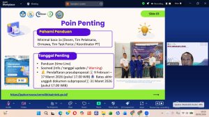 Pada hari Kamis, 23 Oktober 2025 diadakan Penilaian Kemajuan Pelaksanaan PKM (PKP2) skema pendanaan dilaksanakan pada 19-26 Oktober 2025. Kegiatan ini bertujuan untuk menjamin mutu pelaksanaan kegiatan PKM dan dilakukan secara daring oleh tim PKM untuk menunjukkan progres mereka di hadapan para reviewer nasional. Tujuan: Penjaminan mutu pelaksanaan kegiatan PKM