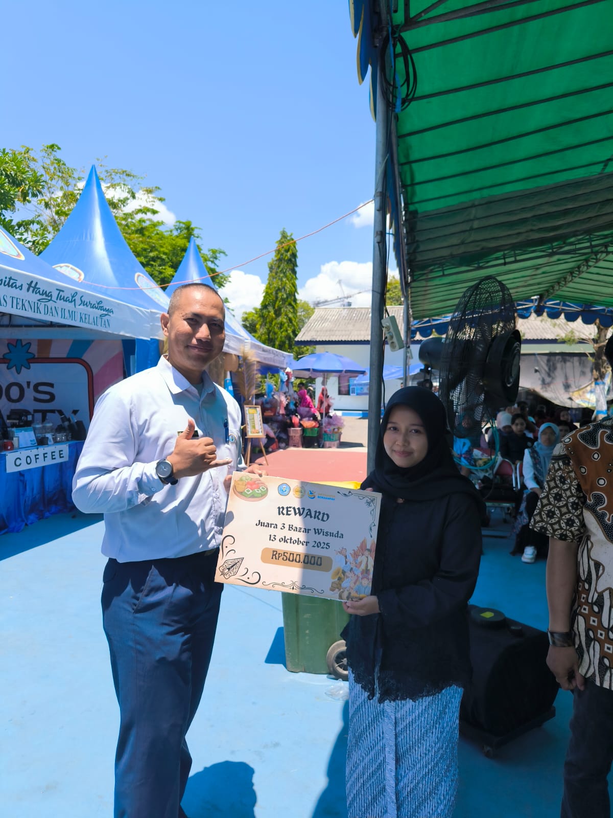 Pada Hari Senin, tanggal 13 Oktober 2025 pada acara wisuda diadakan bazar diikuti semua Fakultas, Koperasi dan Rektorat Universitas Hang Tuah Bazar wisuda adalah acara yang diselenggarakan di sekitar lingkungan kampus atau universitas pada saat upacara wisuda berlangsung. Tujuannya adalah untuk menjual berbagai produk, terutama yang berhubungan dengan perayaan kelulusan, seperti hadiah, makanan, dan cinderamata.
