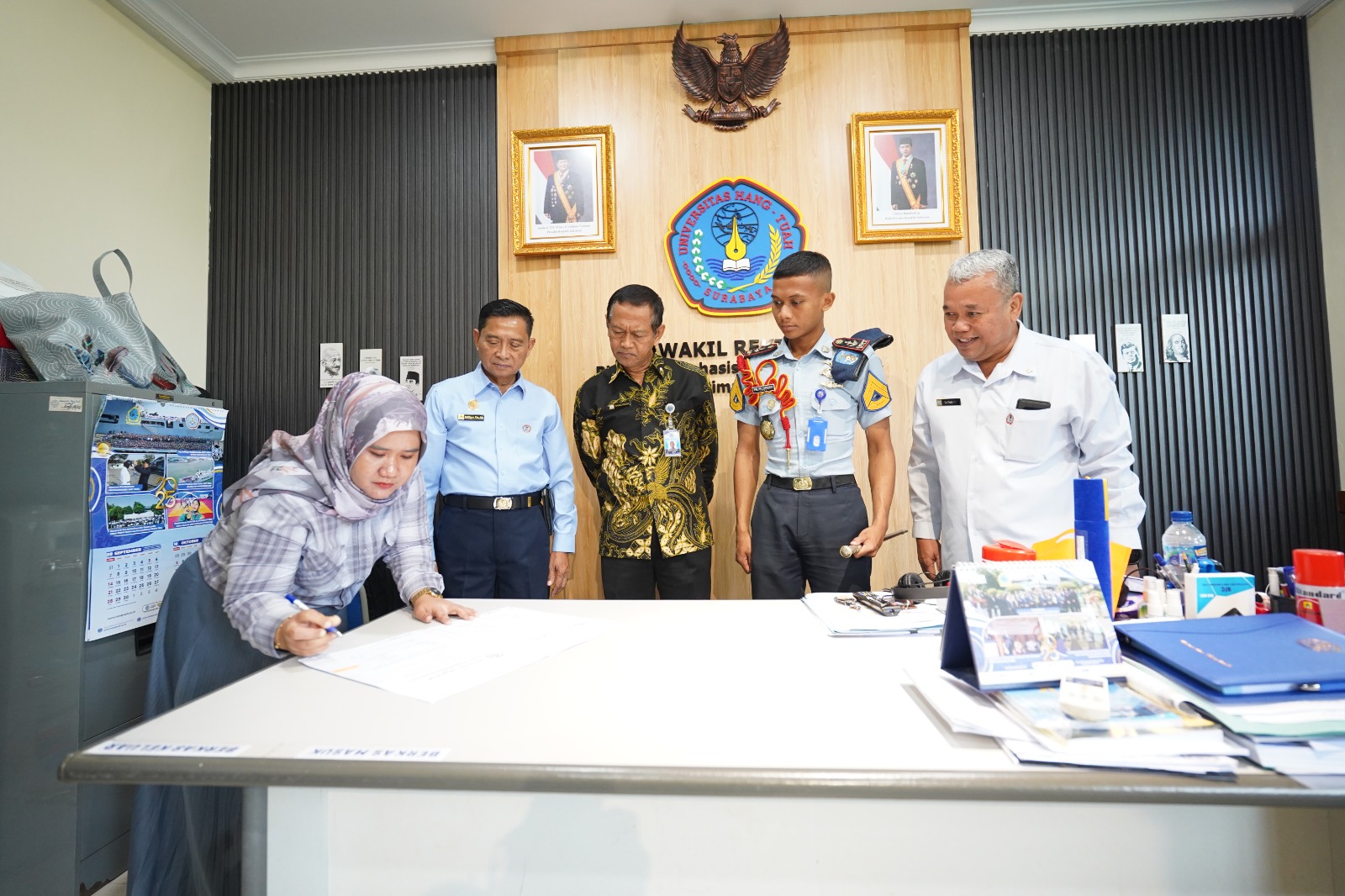 Surabaya, 14 November 2025 Universitas Hang Tuah (UHT) kembali menegaskan komitmennya dalam penguatan ekosistem kewirausahaan dengan menyerahkan dana Pembinaan Mahasiswa Wirausaha (PMW) Termin 2 kepada para dosen pendamping dan mahasiswa penerima program tersebut. Sebanyak empat tim mahasiswa dan empat tim dosen resmi menerima dukungan pendanaan yang diserahkan langsung oleh Wakil Rektor III UHT, Laksamana Pertama TNI (Purn) Dr. Toto Dwijaya Saputra, S.T., M.Si.(Han)., M.Tr.Opsla. Penyerahan dana dilaksanakan di lingkungan kampus UHT dan turut disaksikan oleh Kepala Biro Kemahasiswaan, Kemaritiman dan Alumni, Budi Priyono, S.Sos., M.M. Acara berlangsung khidmat dengan penekanan pada pentingnya inovasi berkelanjutan sebagai fondasi wirausaha mahasiswa yang berdaya saing.