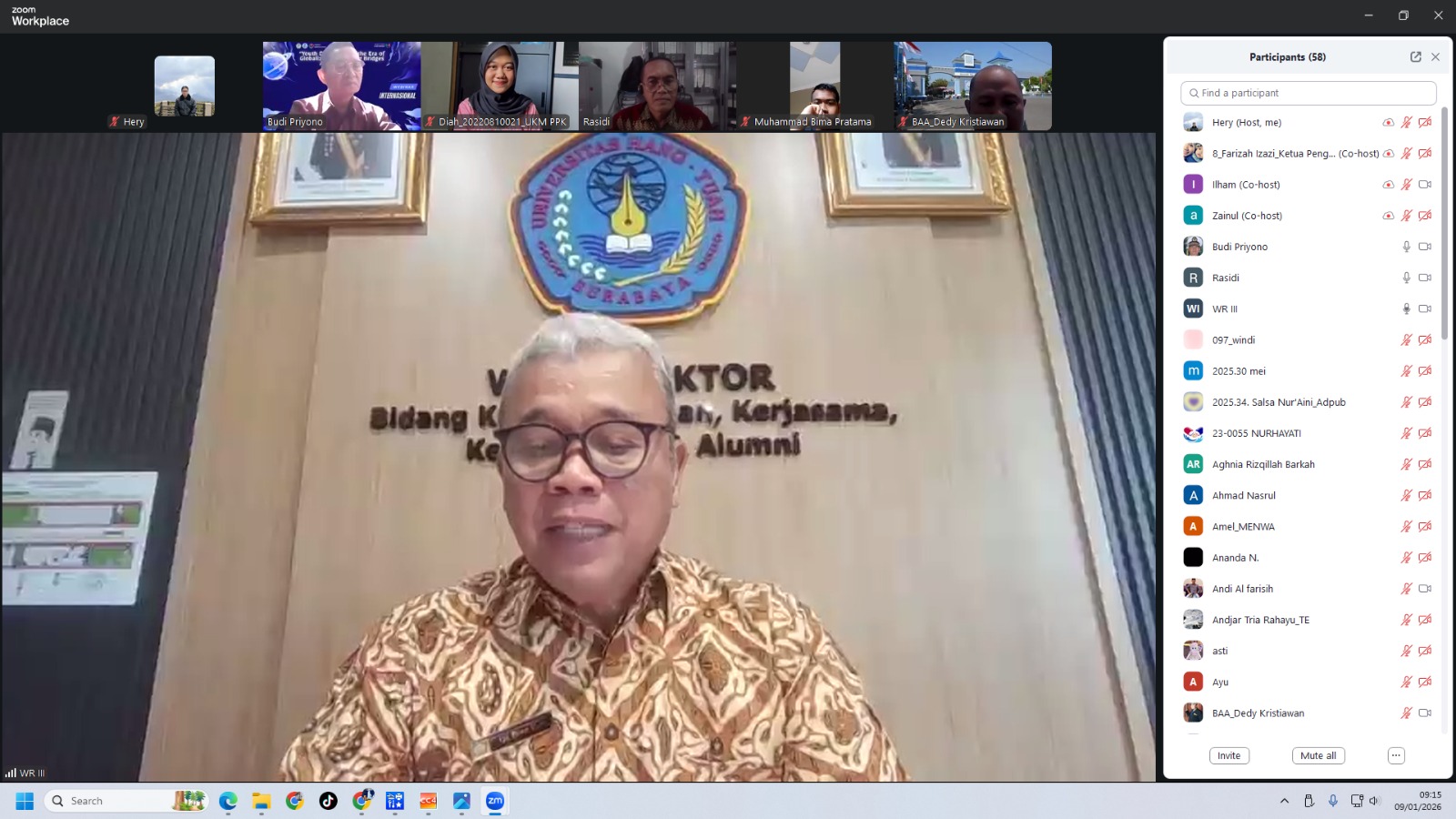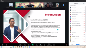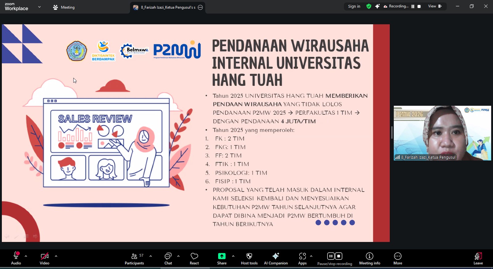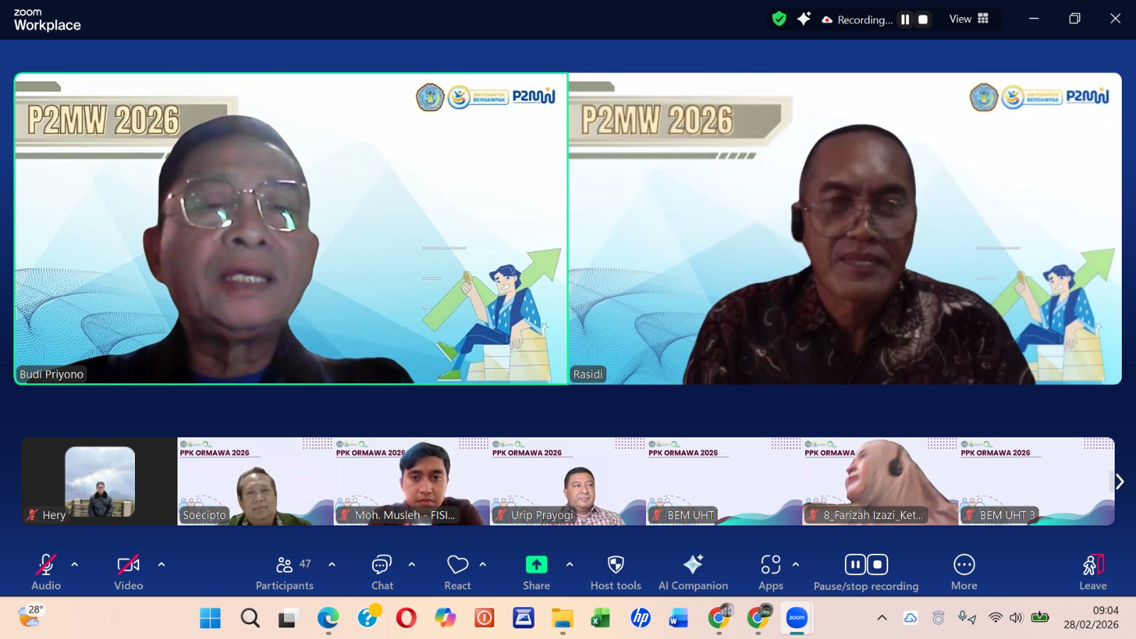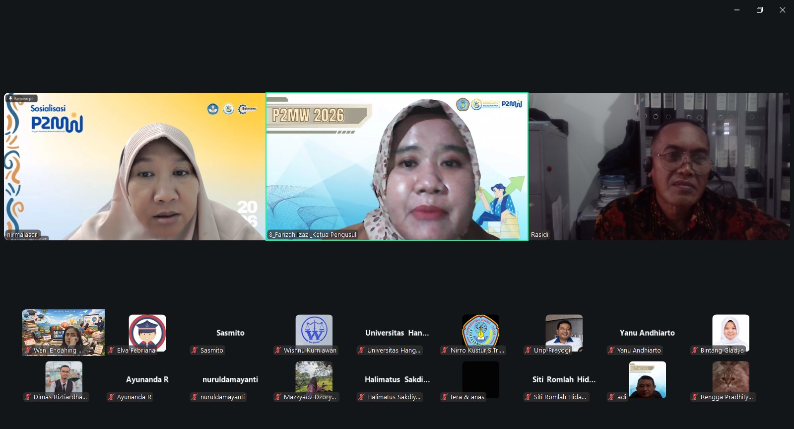 Pada hari jumat, 06 Maret 2026 menyelenggarakan Workshop Program Pembinaan Mahasiswa Wirausaha (P2MW) Tahun 2026 secara daring dengan mengangkat tema “Ideasi dan Sistematika Penulisan Proposal P2MW.” Kegiatan ini menjadi bagian dari komitmen universitas dalam mendorong tumbuhnya jiwa kewirausahaan mahasiswa yang kreatif, inovatif, dan berdaya saing.