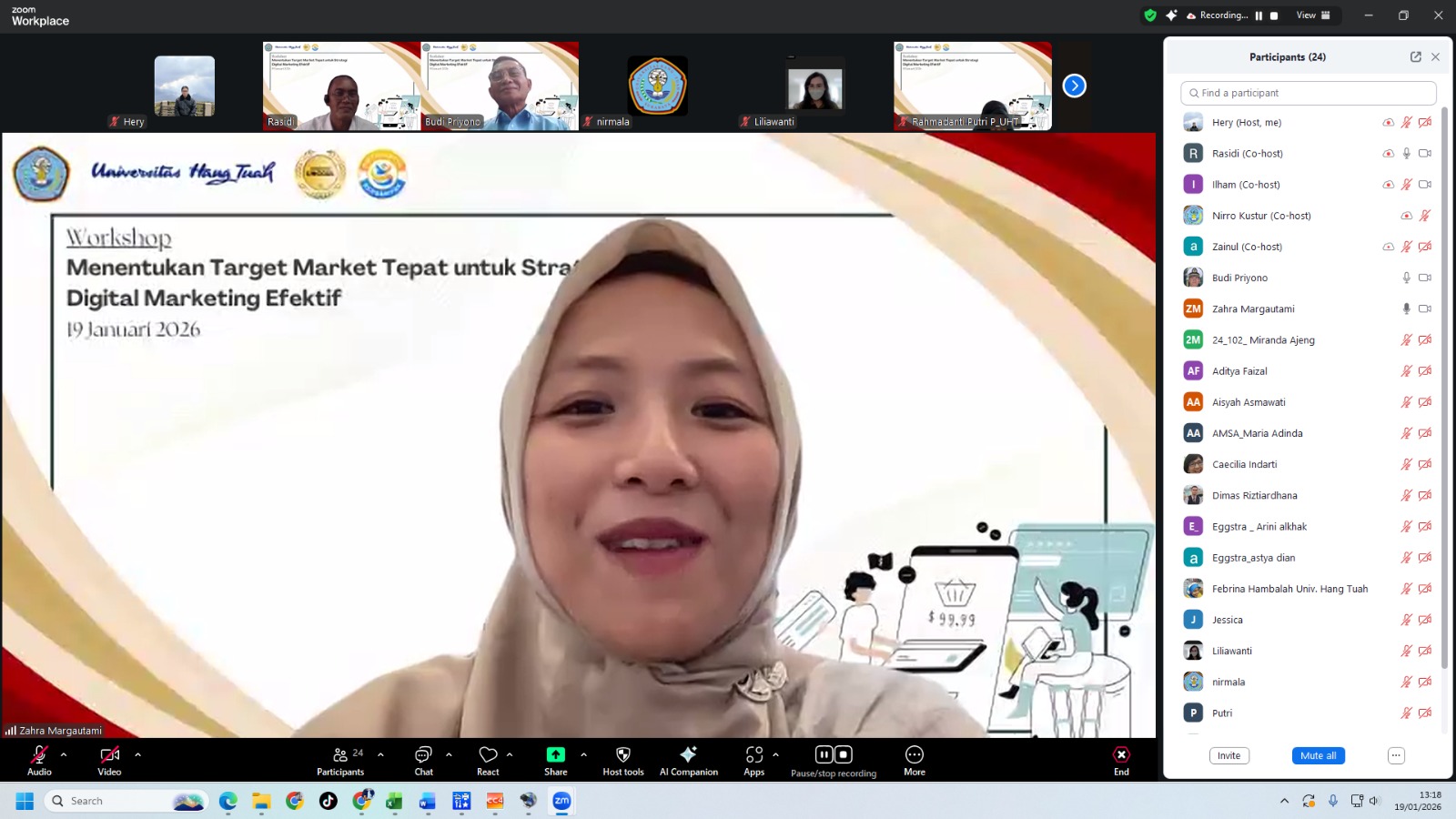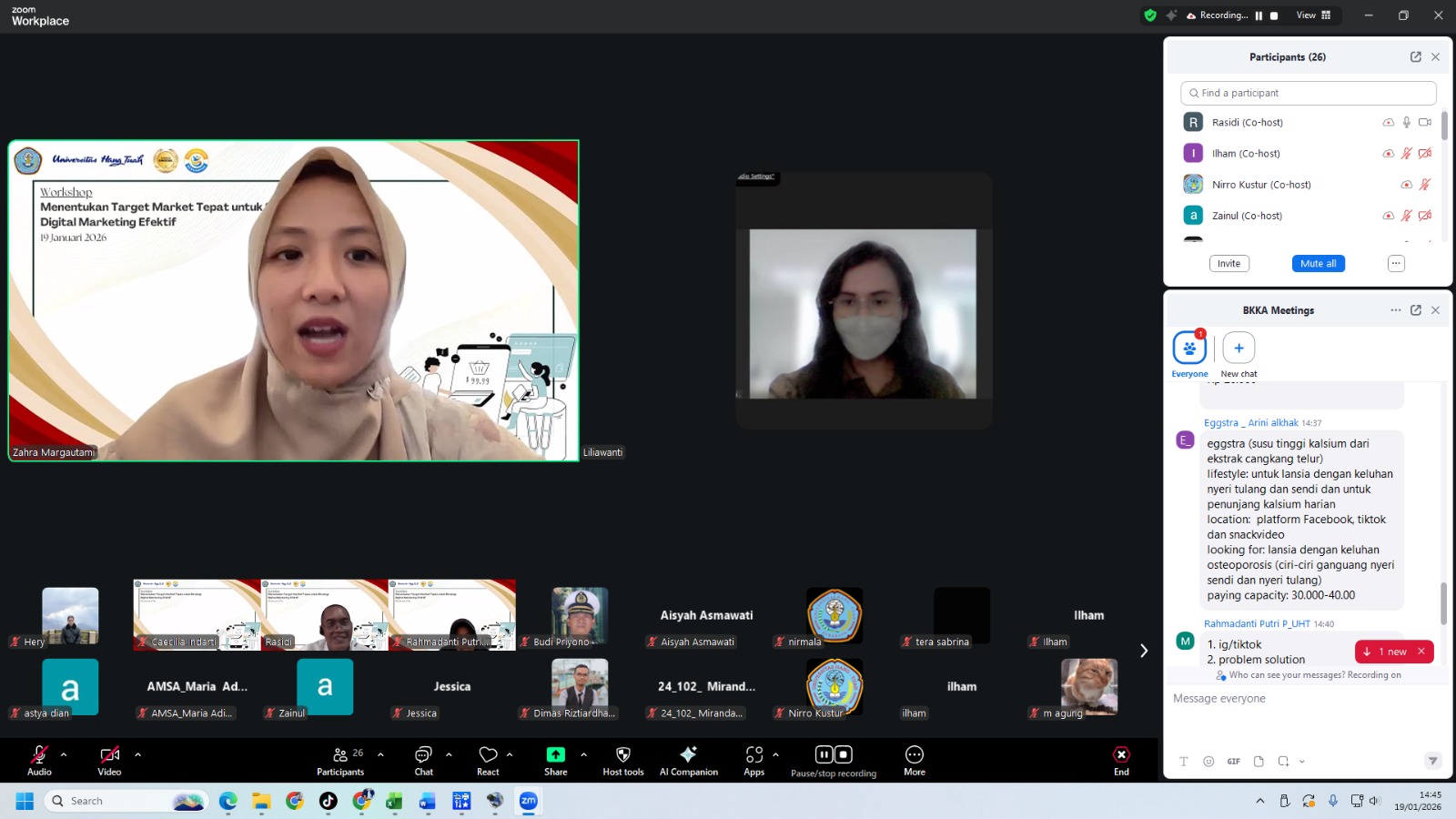 Surabaya, 19 Januari 2026 BKKA mengadakan workshop Menentukan Target Market yang Tepat untuk Strategi Digital Marketing yang Efektif” P2MW Tahun 2026, dengan pembicara ibu Zahra Margautami, S.T., M.M. Pegiat wirausaha dan profesional pengembangan UMKM yang saat ini aktif menjalankan dan mendampingi bisnis di Malaysiakegiatan ini diikuti oleh 8 kelompok mahasiswa UHT (24 Mahasiswa) beserta dosen pendamping