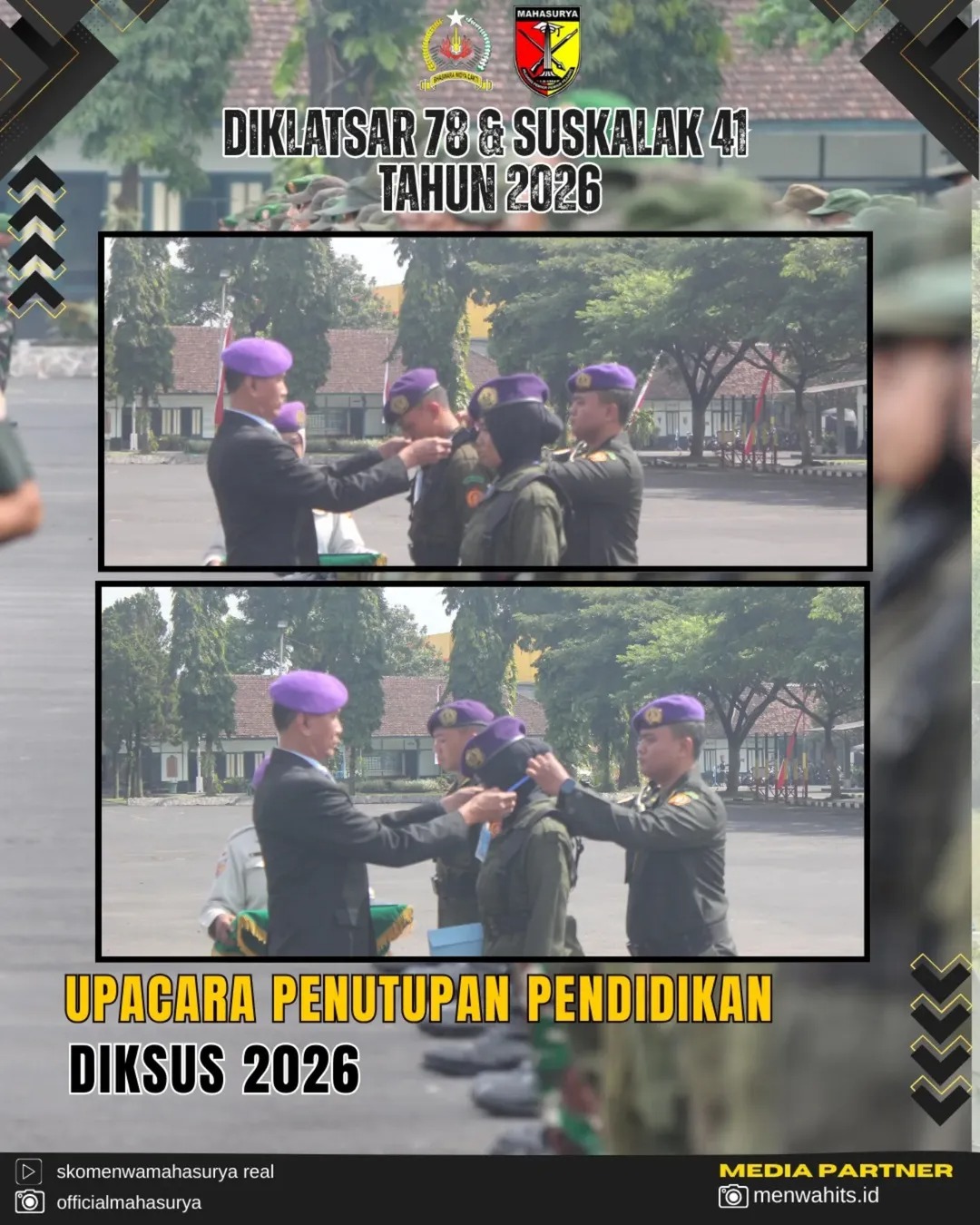 DIKLATSAR LXXVIII dan SUSKALAK XLI Calon Resimen Mahasiswa 875 tahun 2026, Ka.BKKA mewakili Rektor UHT menghadiri Upacara Penutupan Diksar LXXVIII dan Suskalak XLI Menwa Mahasurya Jatim 2026bdi Lapangan Upacara Dodikjur Rindam V Brawijaya Malang Jawa Timur. Upacara Penutupan Diklatsar LXXVIII dan Kursus Kader Pelaksana XLI Resimen Mahasiswa Mahasurya Jawa Timur Berlangsung Khidmat, Rangkaian Pendidikan dan Latihan Dasar (Diklatsar) LXXVIII serta Kursus Kader Pelaksana XLI Resimen Mahasiswa Mahasurya Jawa Timur resmi ditutup melalui Upacara Penutupan Pendidikan yang berlangsung dengan khidmat dan penuh kebanggaan. Kegiatan ini menjadi penanda berakhirnya seluruh tahapan pendidikan dan latihan yang telah dijalani oleh para peserta. Bertindak Sebagai Komandan Upacara, Eko Purwanto S.E., Selaku Kepala Staf Resimen Mahasiswa Mahasurya Jawa Timur. Dan Bertindak Sebagai Komandan Defile, Moh. Saddam Al- Ghifari selaku Asisten Personil Menwa Mahasurya Jatim, Bertindak selaku Inspektur Upacara, Dr. Untung Lasiyono, S.E., M.Si., selaku Komandan Resimen Mahasiswa Mahasurya Jawa Timur yang juga menjabat sebagai Rektor Universitas Adi Buana Surabaya